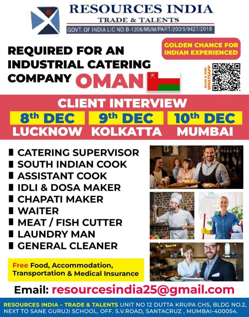 Oman Catering Jobs 2025 : A leading Industrial Catering Company in Oman is hiring immediately