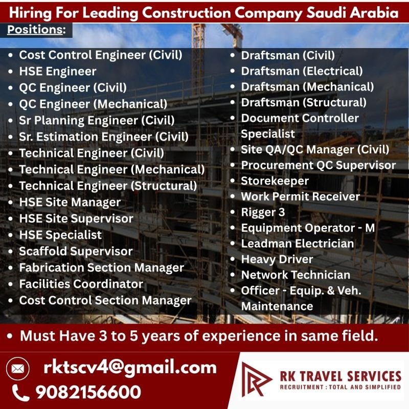 Urgent Jobs in Saudi Arabia – Leading Construction Company 2025