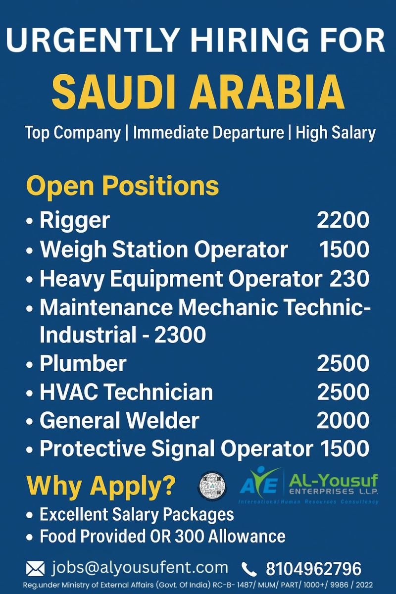 Urgent Jobs in Saudi Arabia 2025 – Leading Company Hiring | Online Interview | Free Accommodation