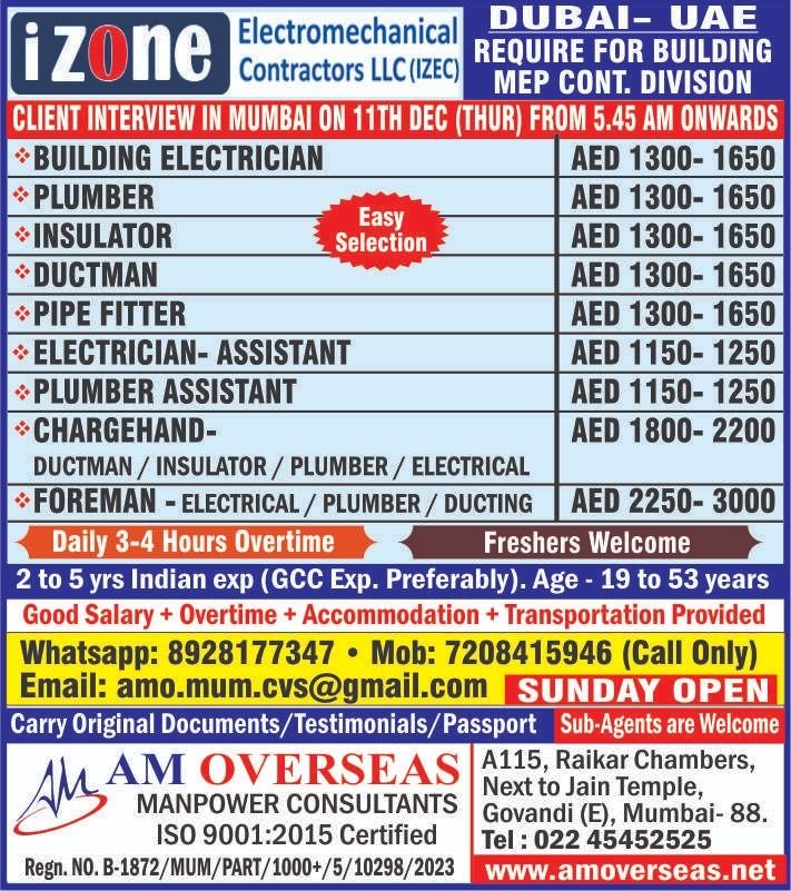 Dubai Jobs – Hiring For iZone Electromechanical Contractors LLC