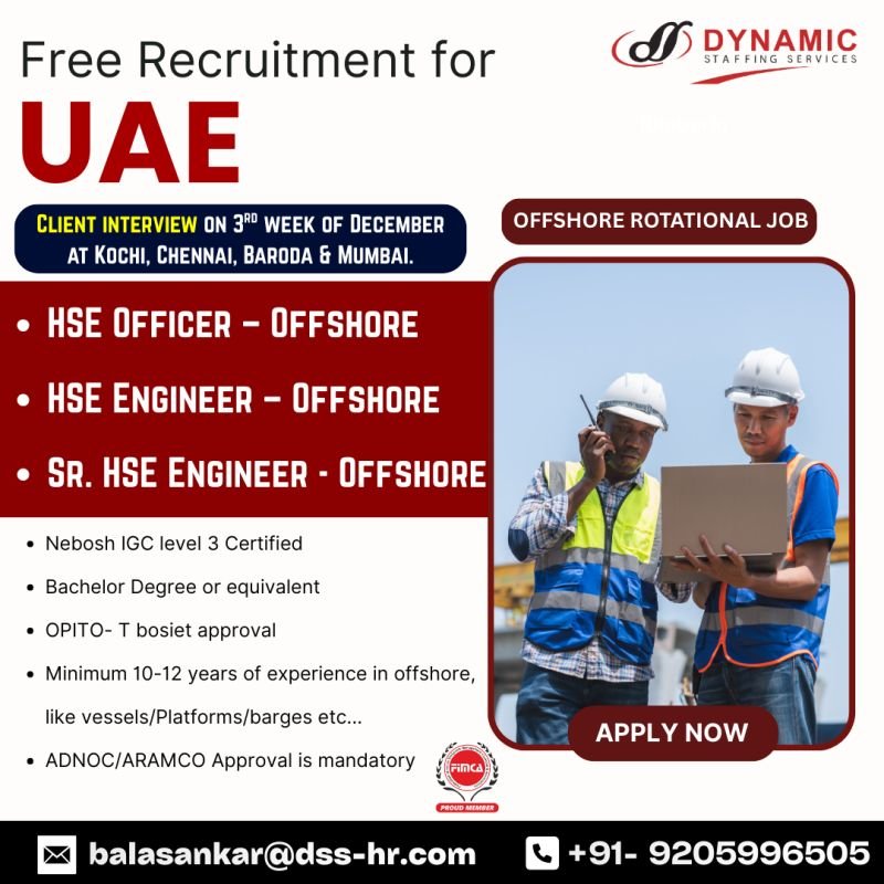 Urgent Hiring: 100 HSE Officer Jobs in UAE for Oil & Gas Experts | NEBOSH Certified Roles