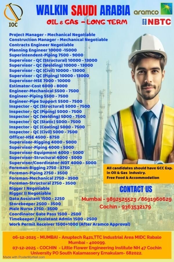 Oil & Gas Jobs in Saudi Arabia: 100+ Vacancies for Indian & Gulf Expats