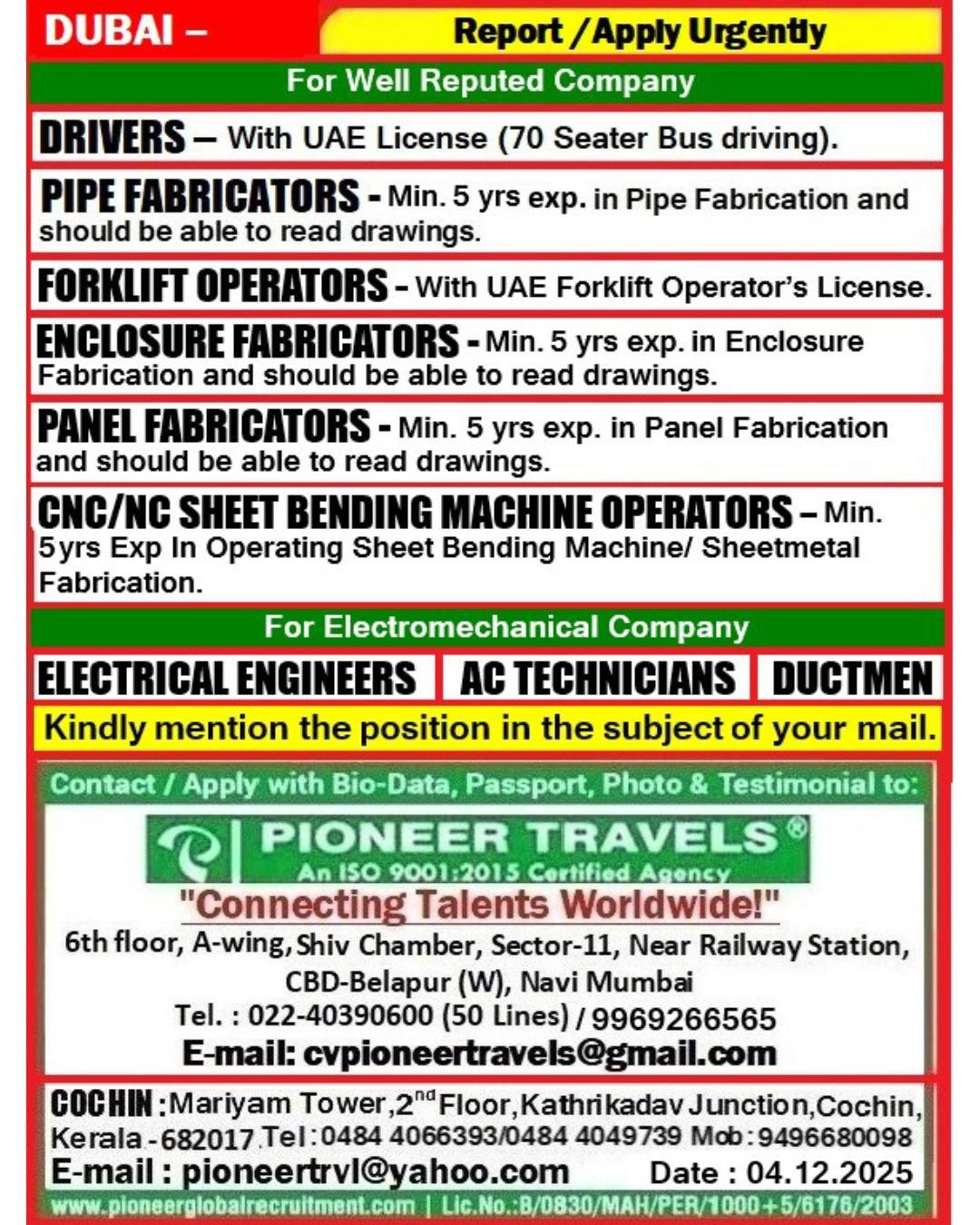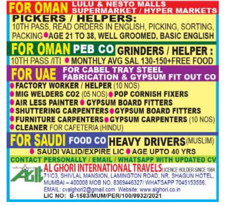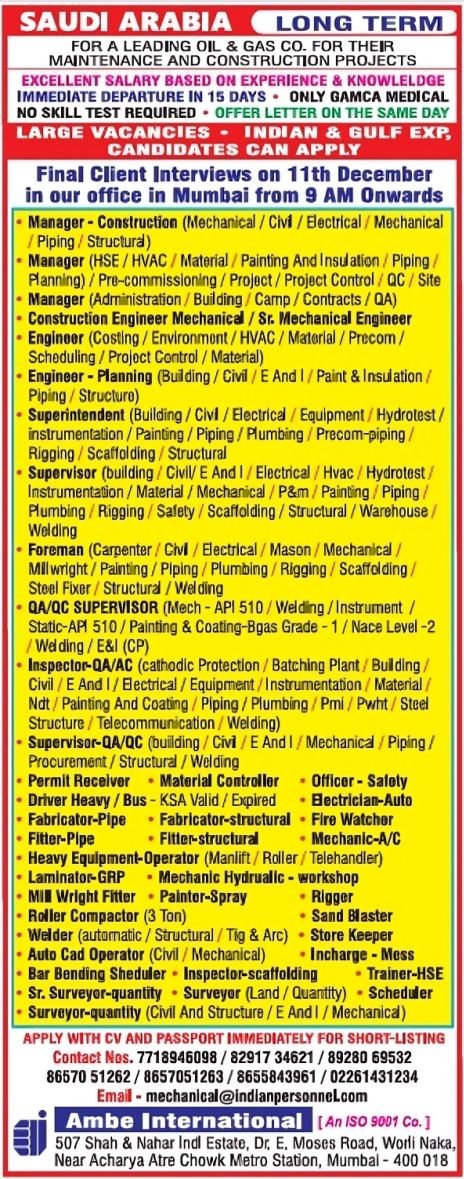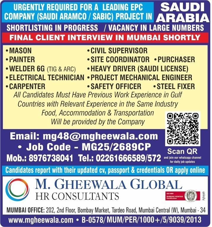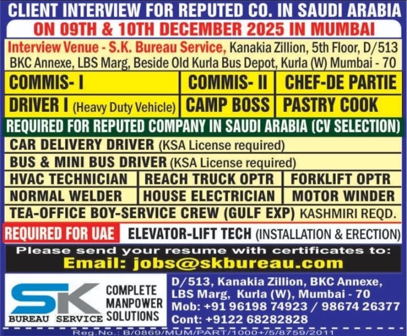Urgent Saudi Arabia & UAE Jobs 2025: Client Interview Mumbai on 9th & 10th December – Drivers, Chef, HVAC, Welders Wanted!