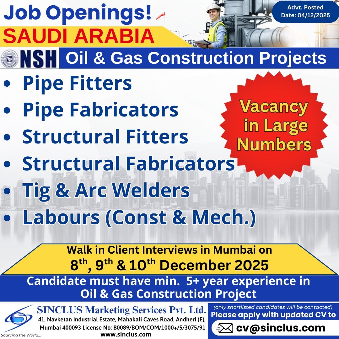 Job Openings in Saudi Arabia | NSH Oil & Gas Construction Projects