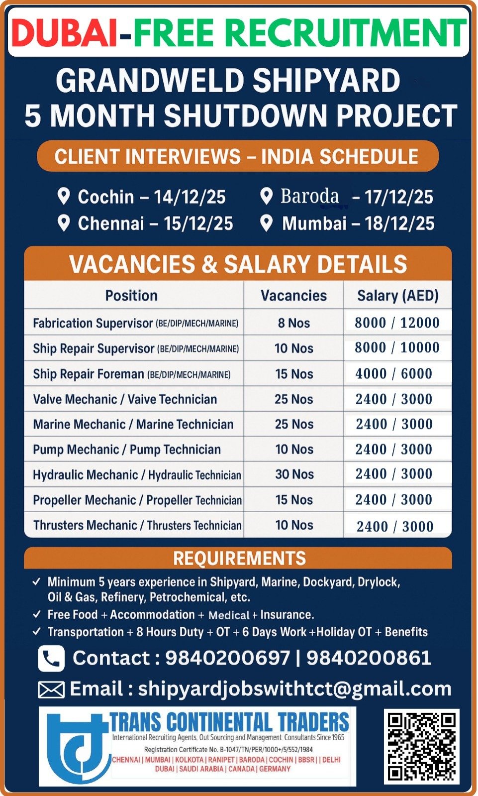 Hiring For Grandweld Shipyard Dubai Shutdown Project 2025 – Urgent Free Recruitment