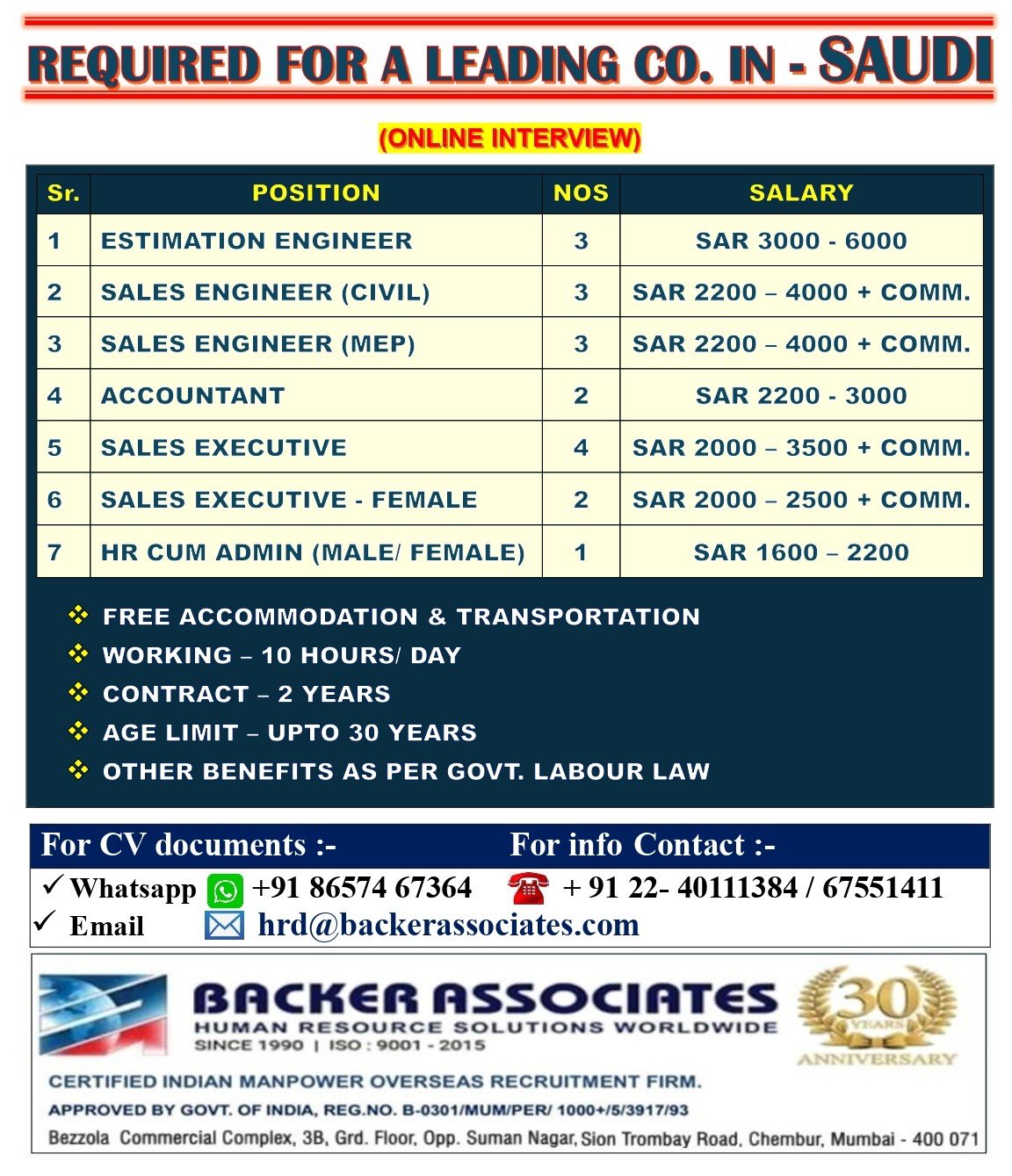 Saudi Arabia – Hiring For Reputed Company – High Salary