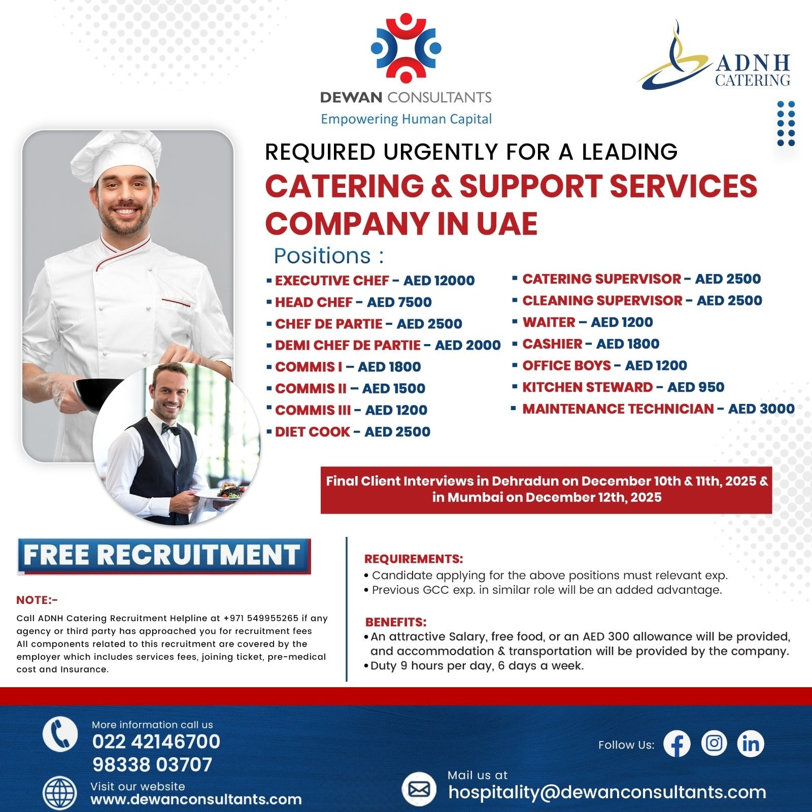 UAE – Hiring urgently for a Leading Catering & Support Services Company – Apply now