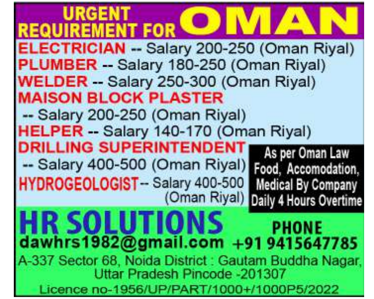 Urgent Jobs in Oman 2025 – High Salary + Free Food & Accommodation