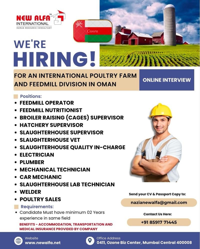 Hiring For Oman – Join an International Poultry Farm and Feedmill Division