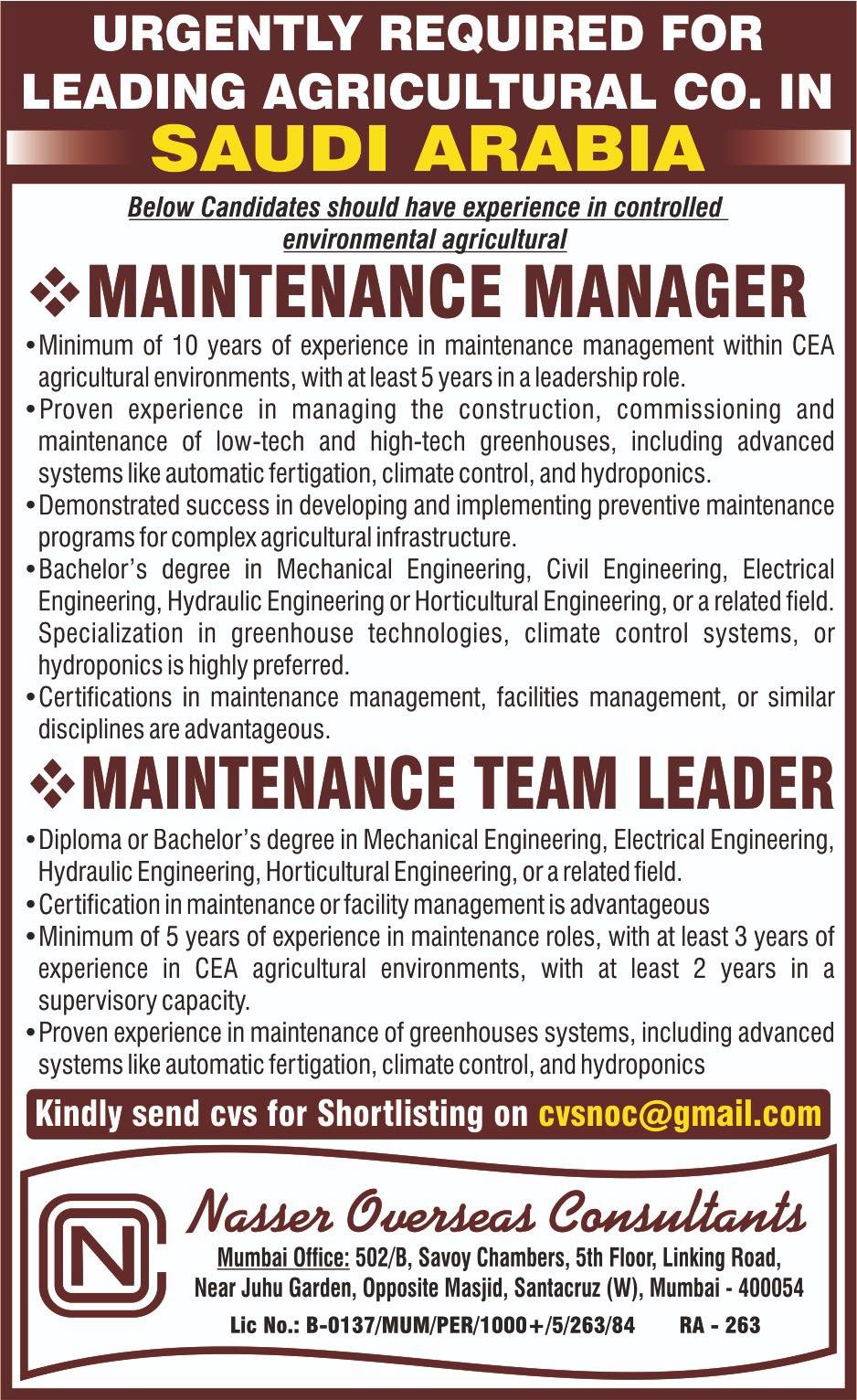 Urgent Jobs for Leading Agricultural Co. in Saudi Arabia 2025
