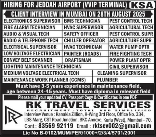 Saudi Arabia – Hiring for Jeddah Airport (VIP Terminal)