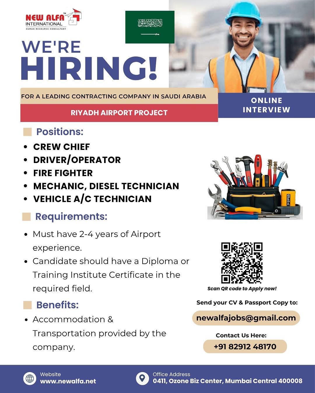 Recruitment For Riyadh Airport Project in Saudi Arabia