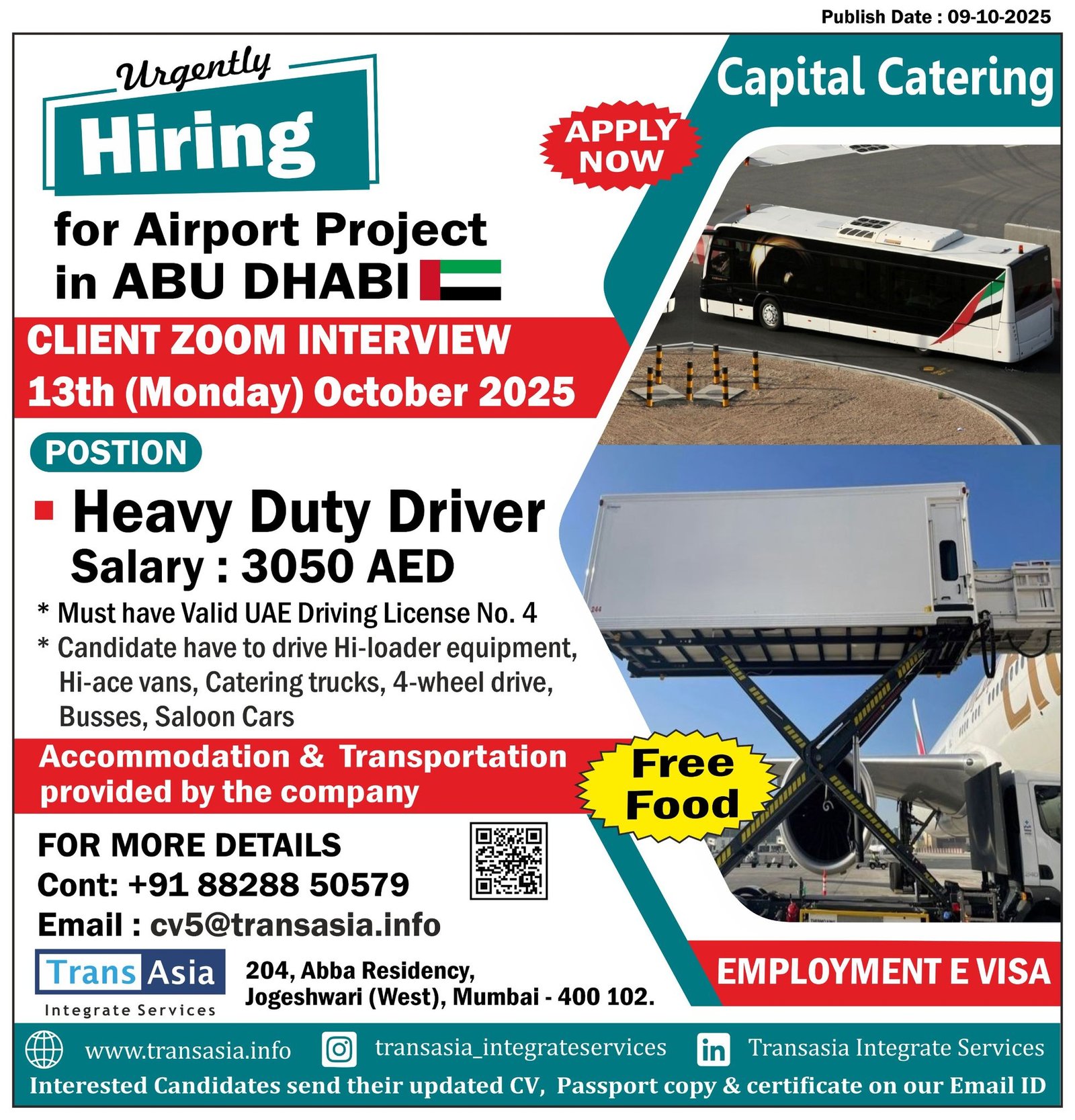 UAE Airport Jobs : Urgent Hiring For Heavy Duty Driver