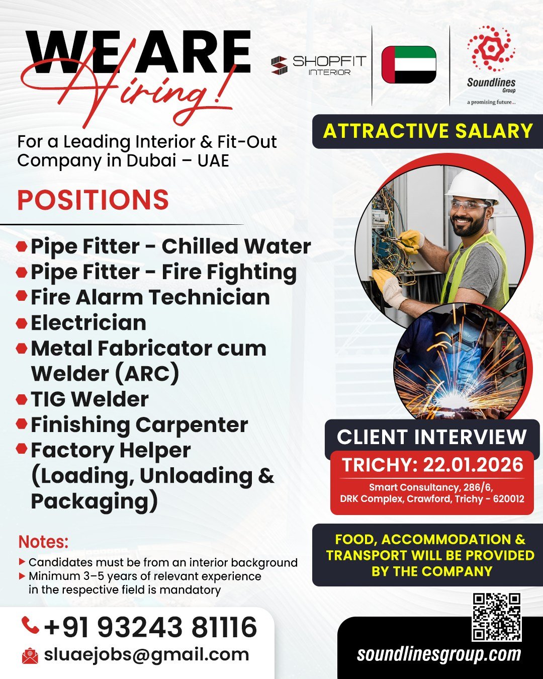 A leading group of companies in Bahrain is urgently hiring skilled and dedicated professionals for various technical, fabrication, and service roles. This is an excellent opportunity with attractive salary packages and standard expatriate benefits through Vira International International Placement Pvt Ltd (Govt. of India approved agency).