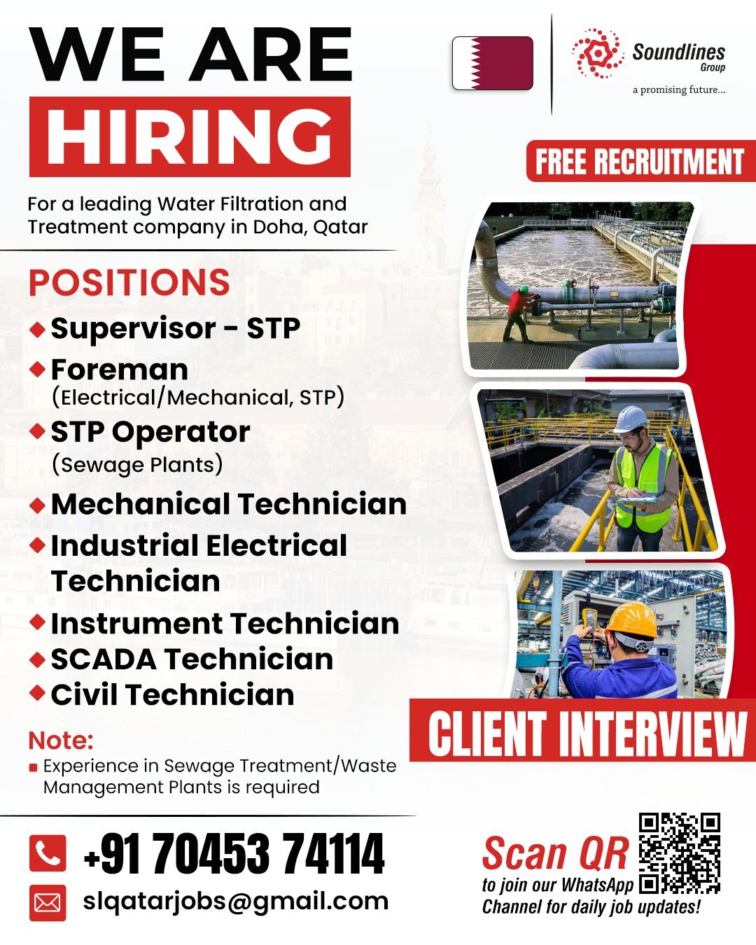 Recruitment For a leading Water Filtration and Treatment company in Doha, Qatar