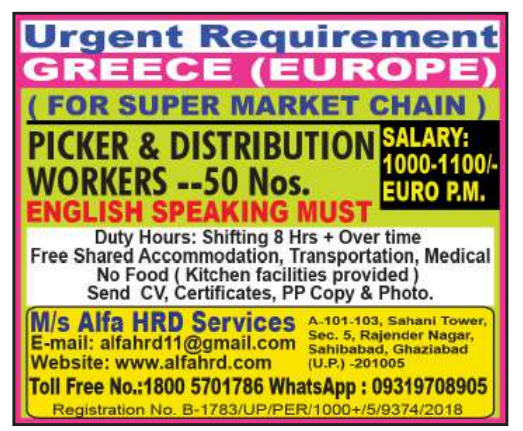 Urgent Requirement: Picker & Distribution Workers Jobs in Greece (Europe) for Supermarket Chain – 50 Nos. (2026)