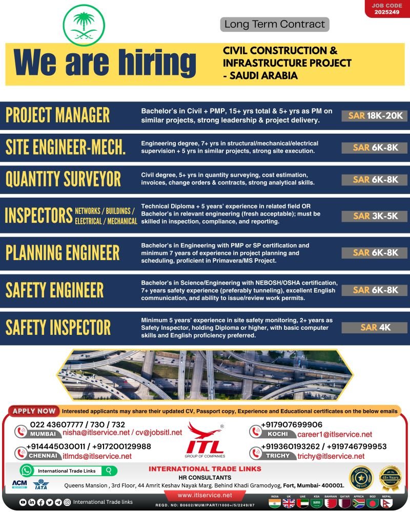 Saudi Arabia Civil Construction & Infrastructure Jobs 2025 – Apply Now