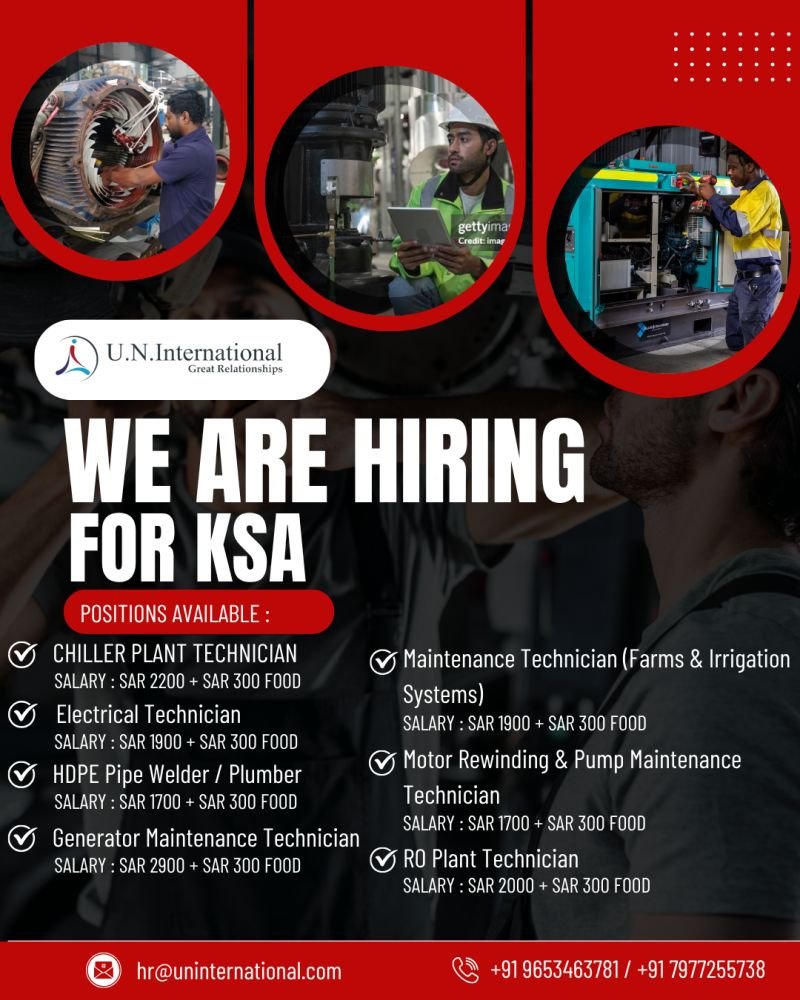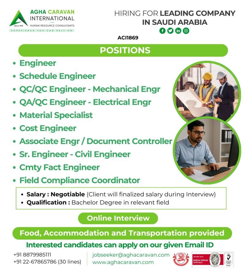 Hiring for a Leading Company in Saudi Arabia across multiple engineering roles.