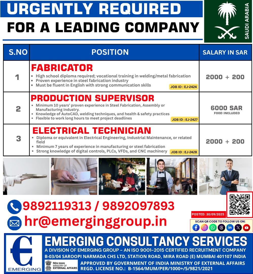 Urgent Job Openings for Leading Company in Saudi Arabia