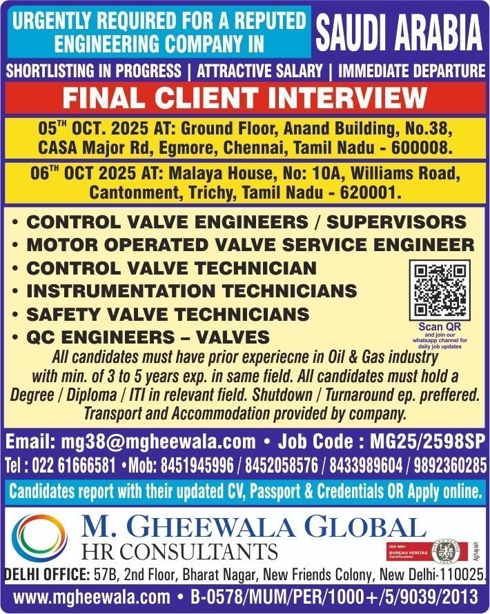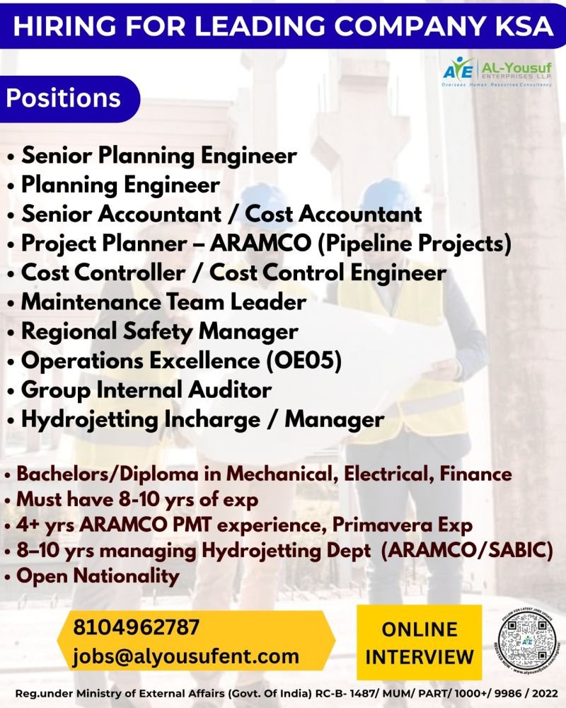 Urgent Job Openings at a Reputed Engineering Company in Saudi Arabia – Apply Now!