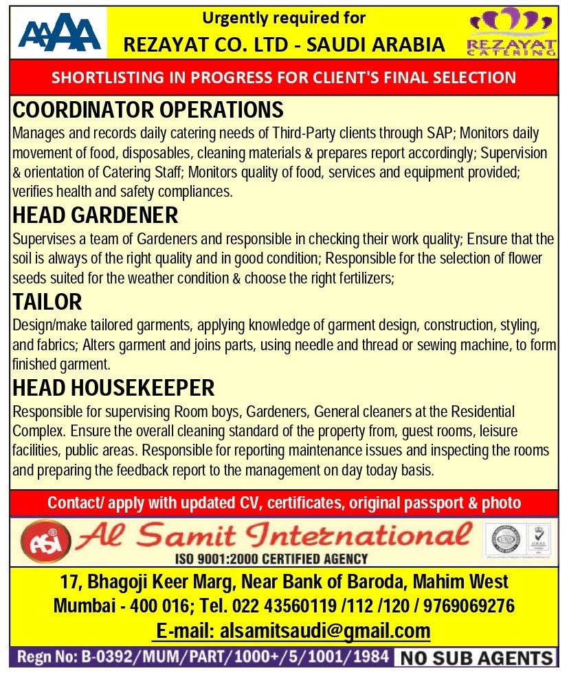 Urgent Job Opportunities at Rezayat Co. Ltd – Saudi Arabia – Apply Now!