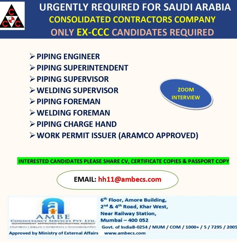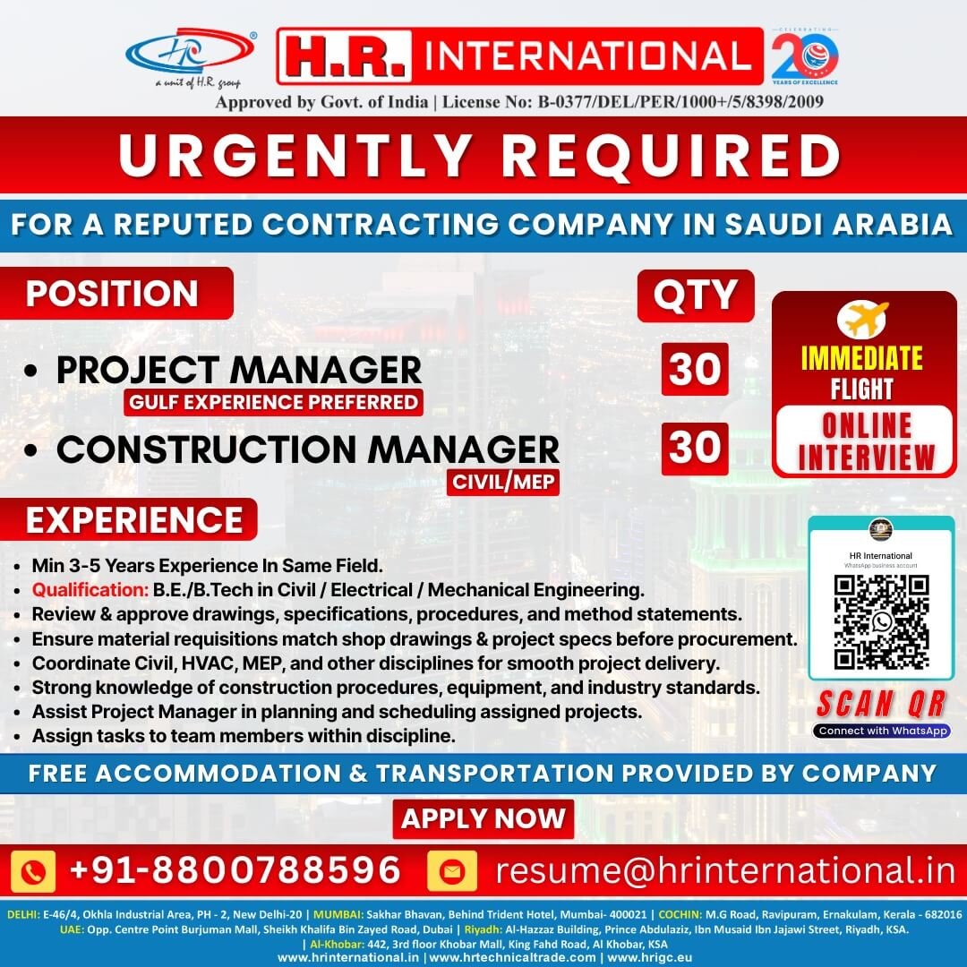 Saudi Arabia – Urgently hiring for a reputed contracting company