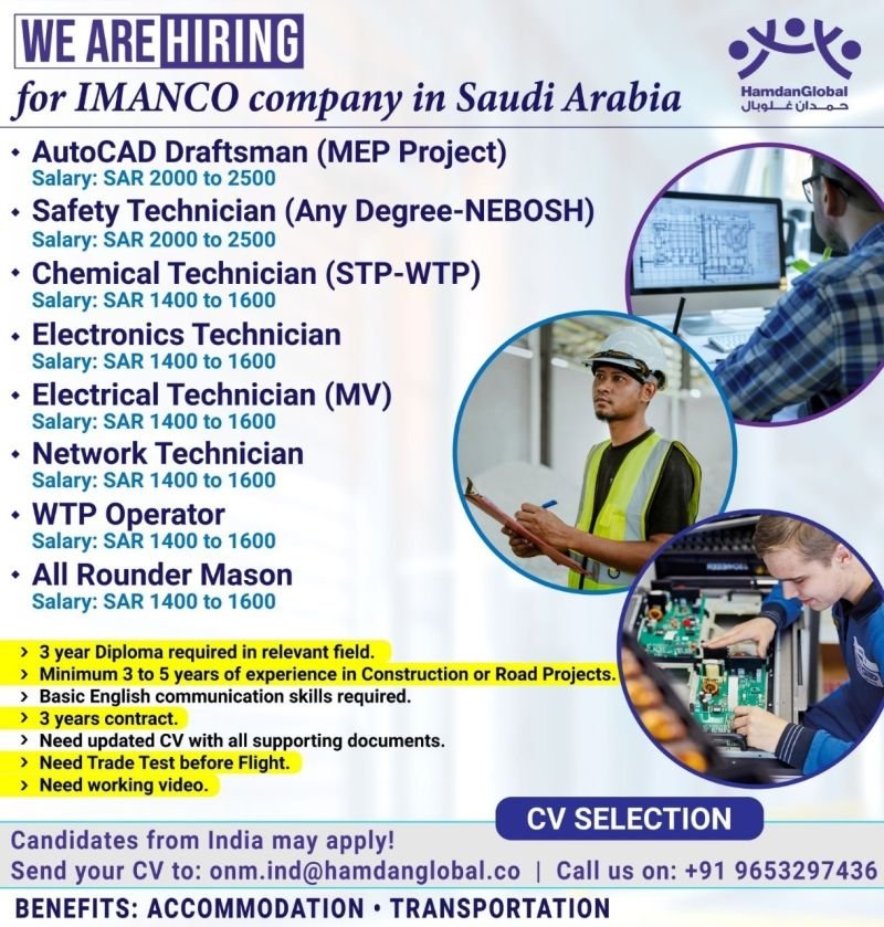Hiring for IMANCO company in Saudi Arabia – CV Selection