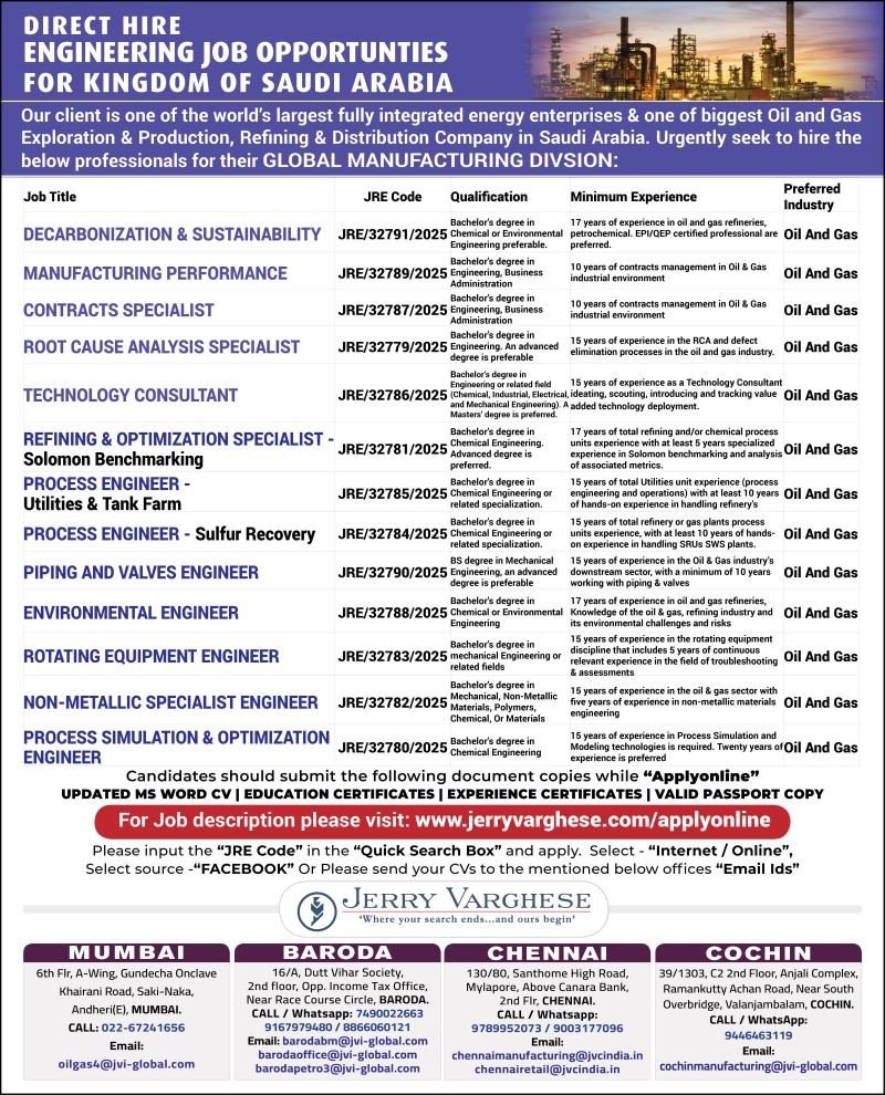 Job Vacancies for Saudi Arabia – Long Term Opportunities
