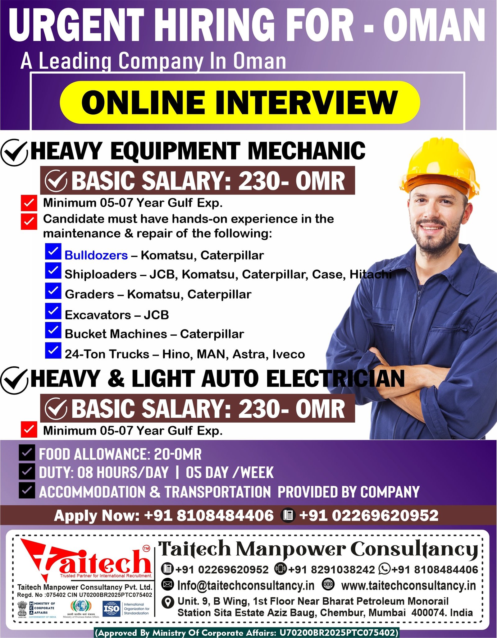 Urgent Hiring for a Leading Company in Oman – Online Interview
