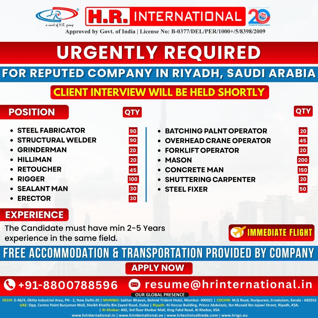 Urgent Job Openings for Leading Company in Saudi Arabia