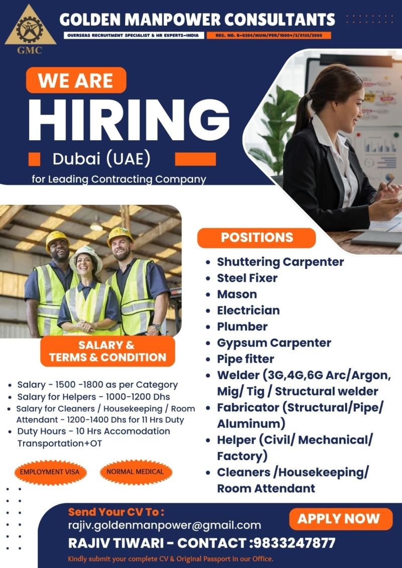 Top Job Vacancies in Dubai UAE 2025: Construction & Skilled Trades Hiring Now