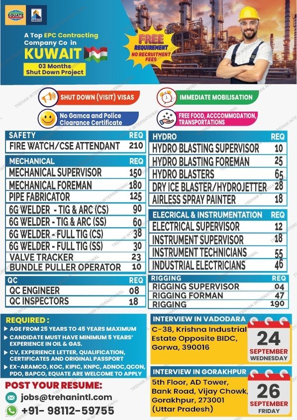 Job Opportunities in Kuwait: Shutdown Project by Top EPC Company