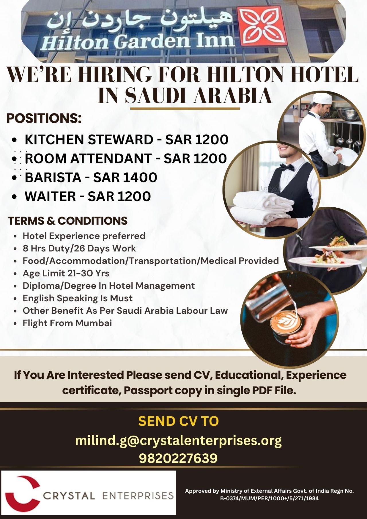 Are you looking for a rewarding career in the hospitality industry? Hilton Garden Inn is hiring for multiple positions in Saudi Arabia! This is your chance to work with a globally renowned hotel chain and build a successful career.