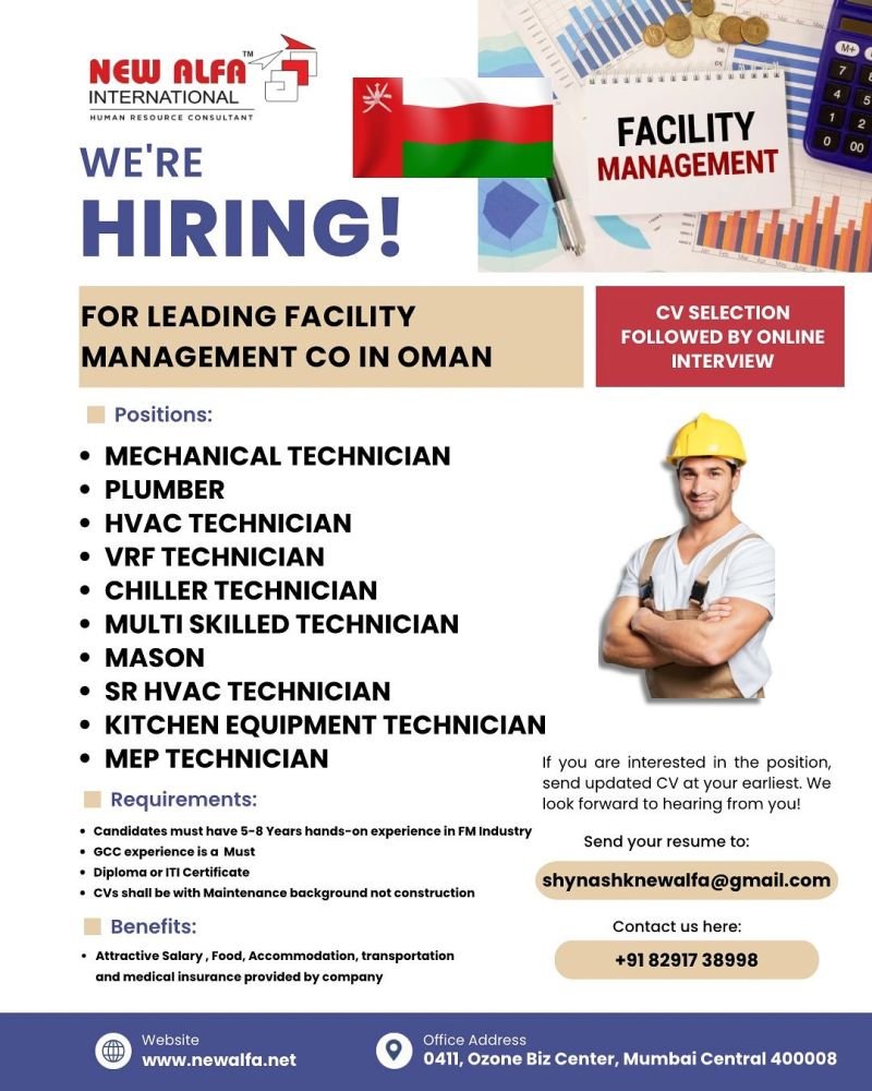 - 5–8 years’ experience in Facility Management (FM Industry)