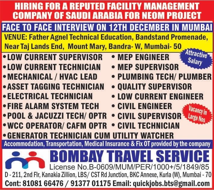 Saudi Arabia : Hiring For Facility Management Jobs for NEOM Project Saudi Arabia