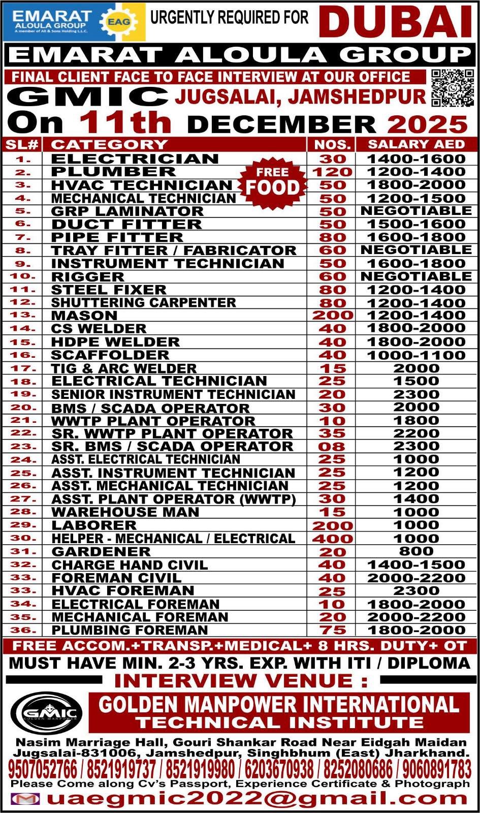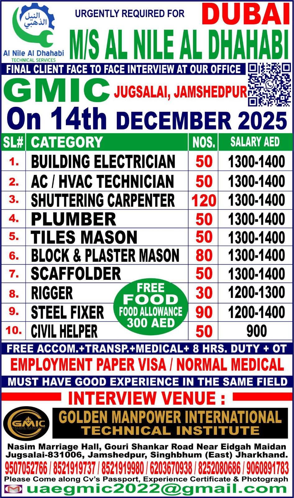 Dubai Jobs 2025: Construction & Technical Vacancies with M/S Al Nile Al Dhahabi