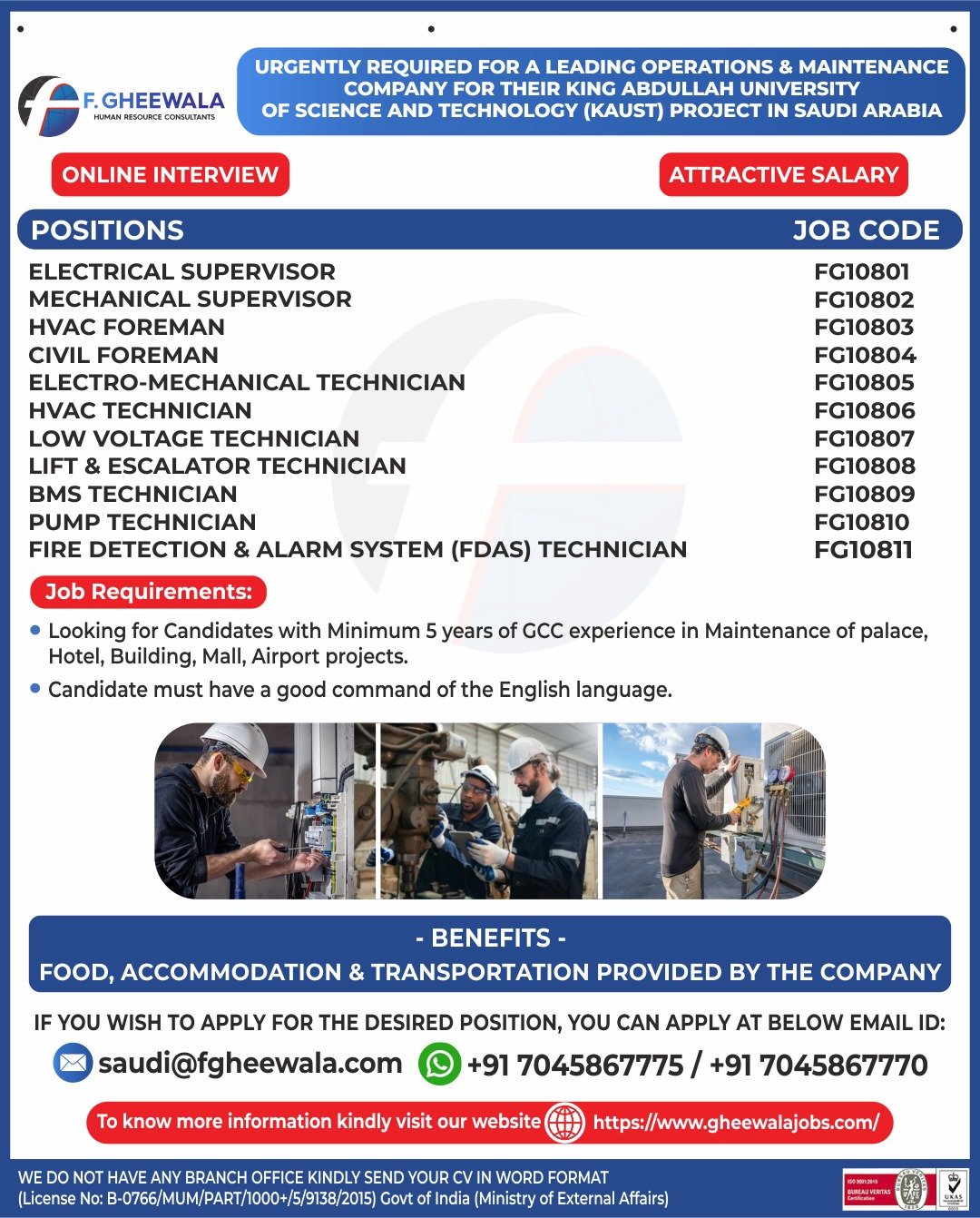 Saudi Arabia – Hiring For Reputed Facility Management Company