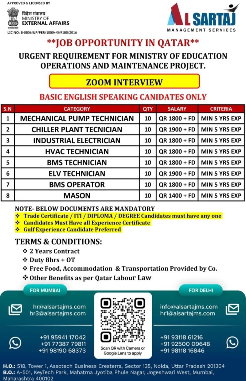 Urgent Job Opportunity in Qatar: Ministry of Education Operations and Maintenance Project