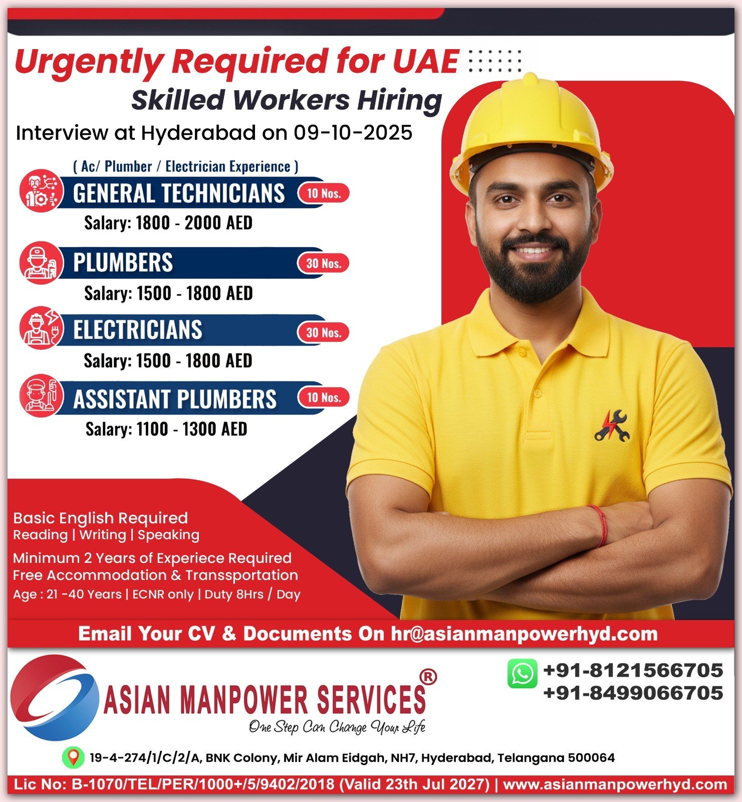 Urgently Hiring Skilled Workers for UAE – Job Opportunities 2025