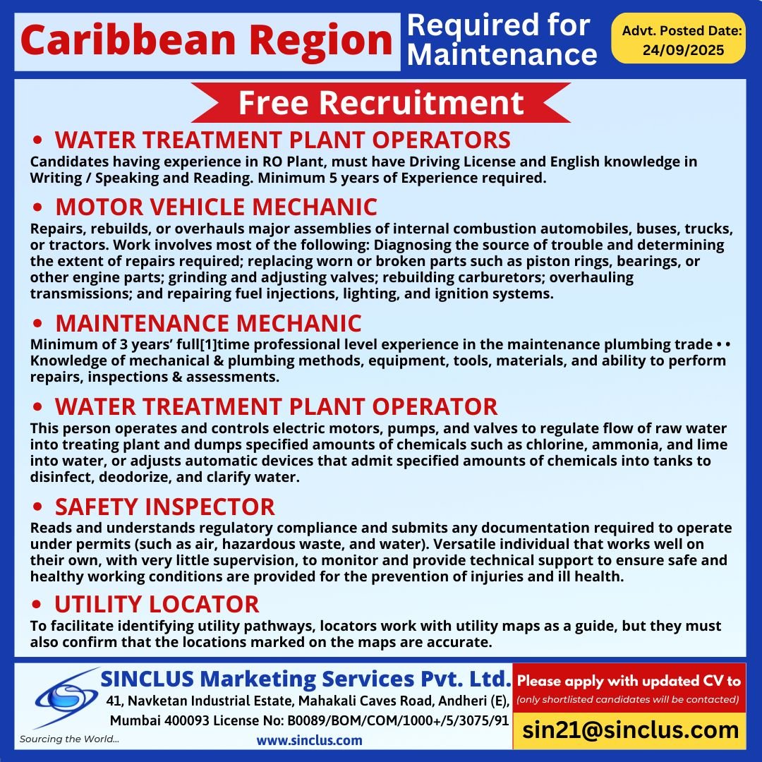 Job Opportunities in the Caribbean Region for Maintenance Roles