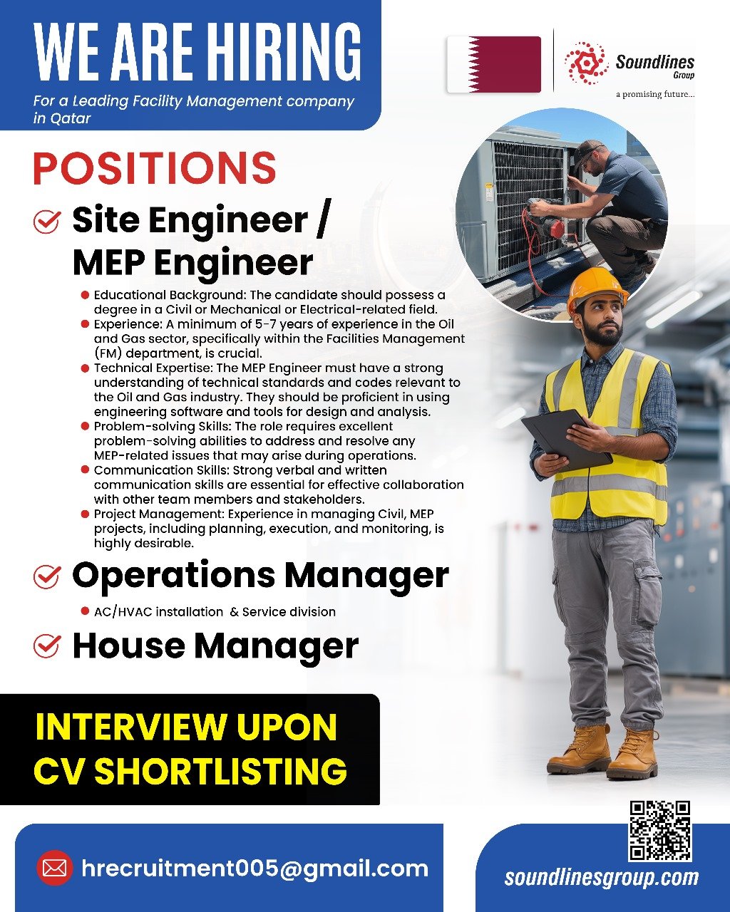 Recruitment For a leading Water Filtration and Treatment company in Doha, Qatar