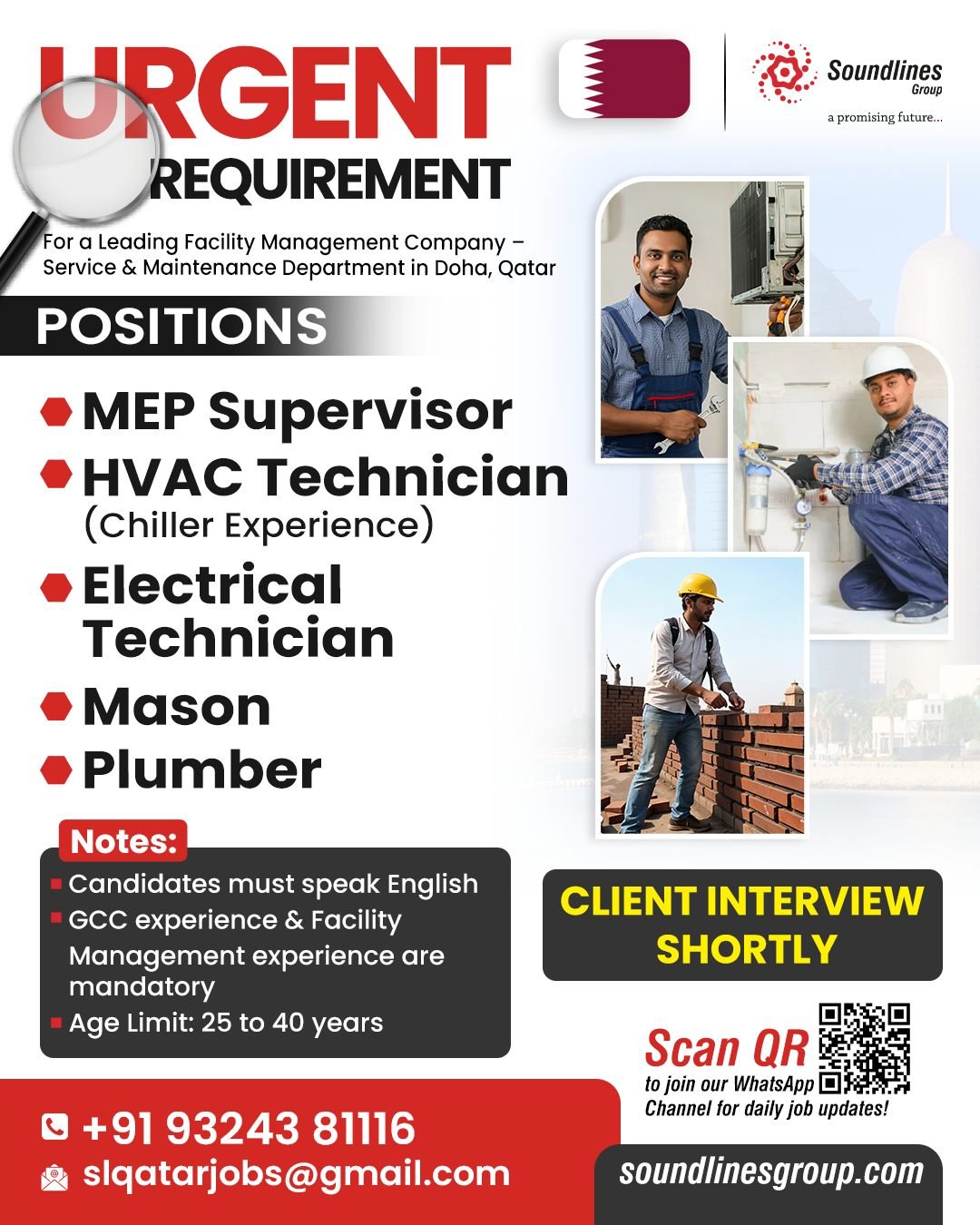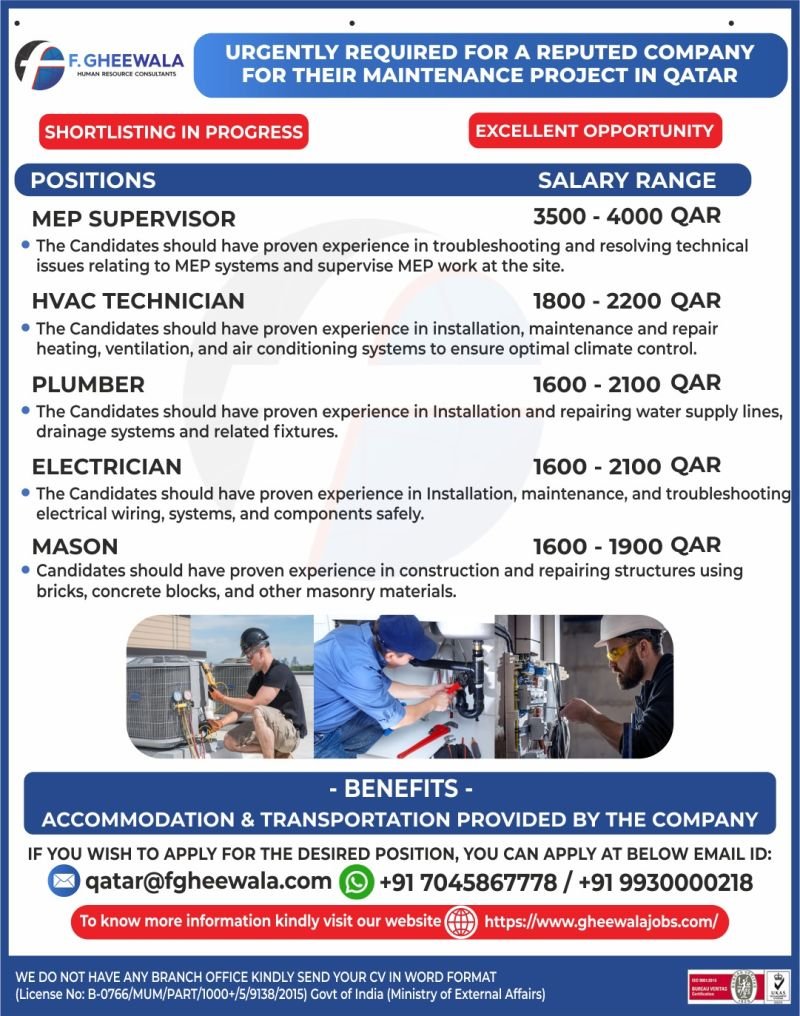 Qatar – Recruitment For a Leading Facility Management Company – Service & Maintenance Department in Doha