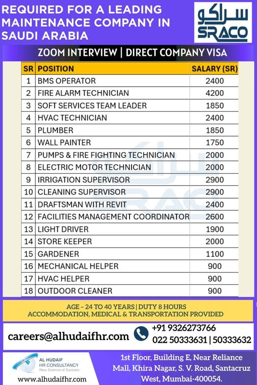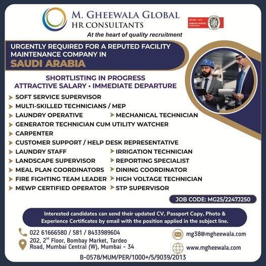 hiring for a Facilities Management company in Saudi Arabia