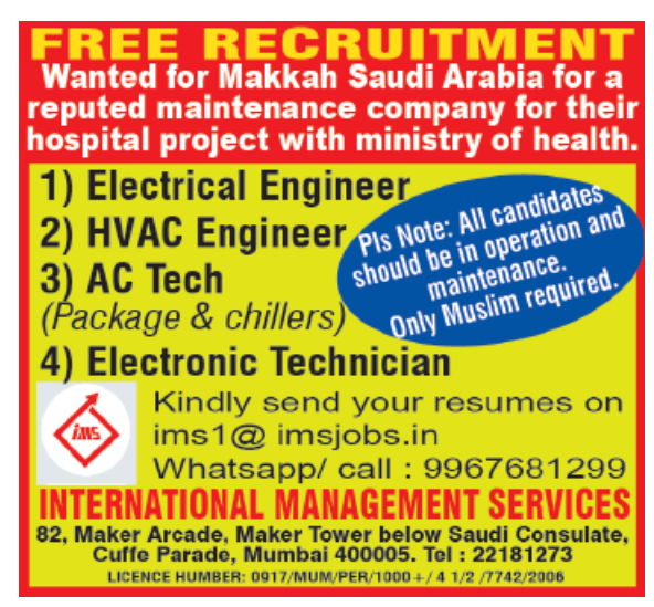 Hiring for Makkah, Saudi Arabia – Free Recruitment!