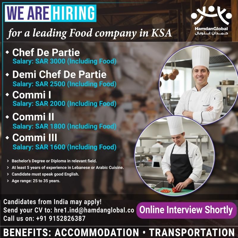hiring for a leading Food company in Saudi Arabia – Online Interview Shortly