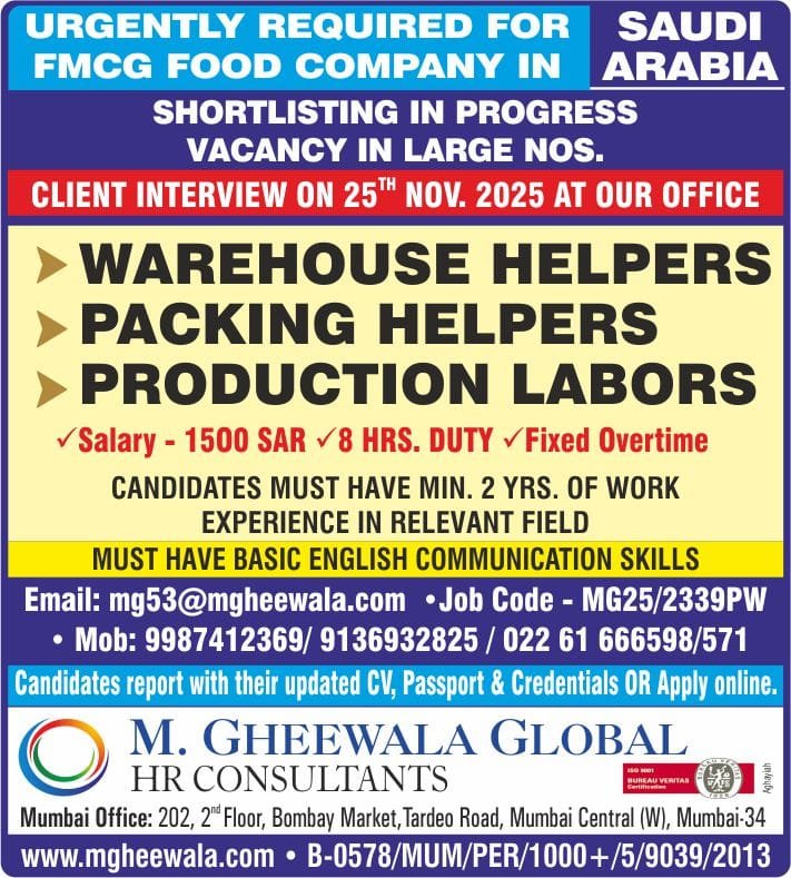 Urgent Saudi Arabia FMCG Food Company Jobs 2025 – Large Nos