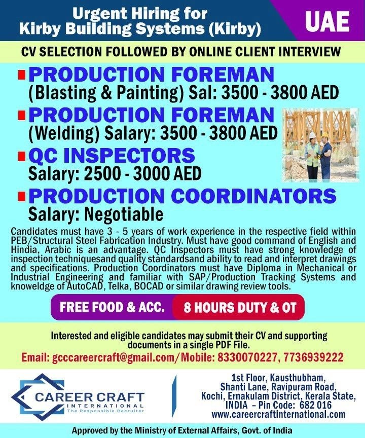 [Note: We try to provide genuine jobs .We dont have any role in Recruitment Process.Please enquiry about the Recruiting Agent before you accept the Job Offer / Pay any Money to them]