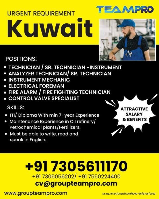 - Welder cum Copper Blazer (Gulf experience preferred)