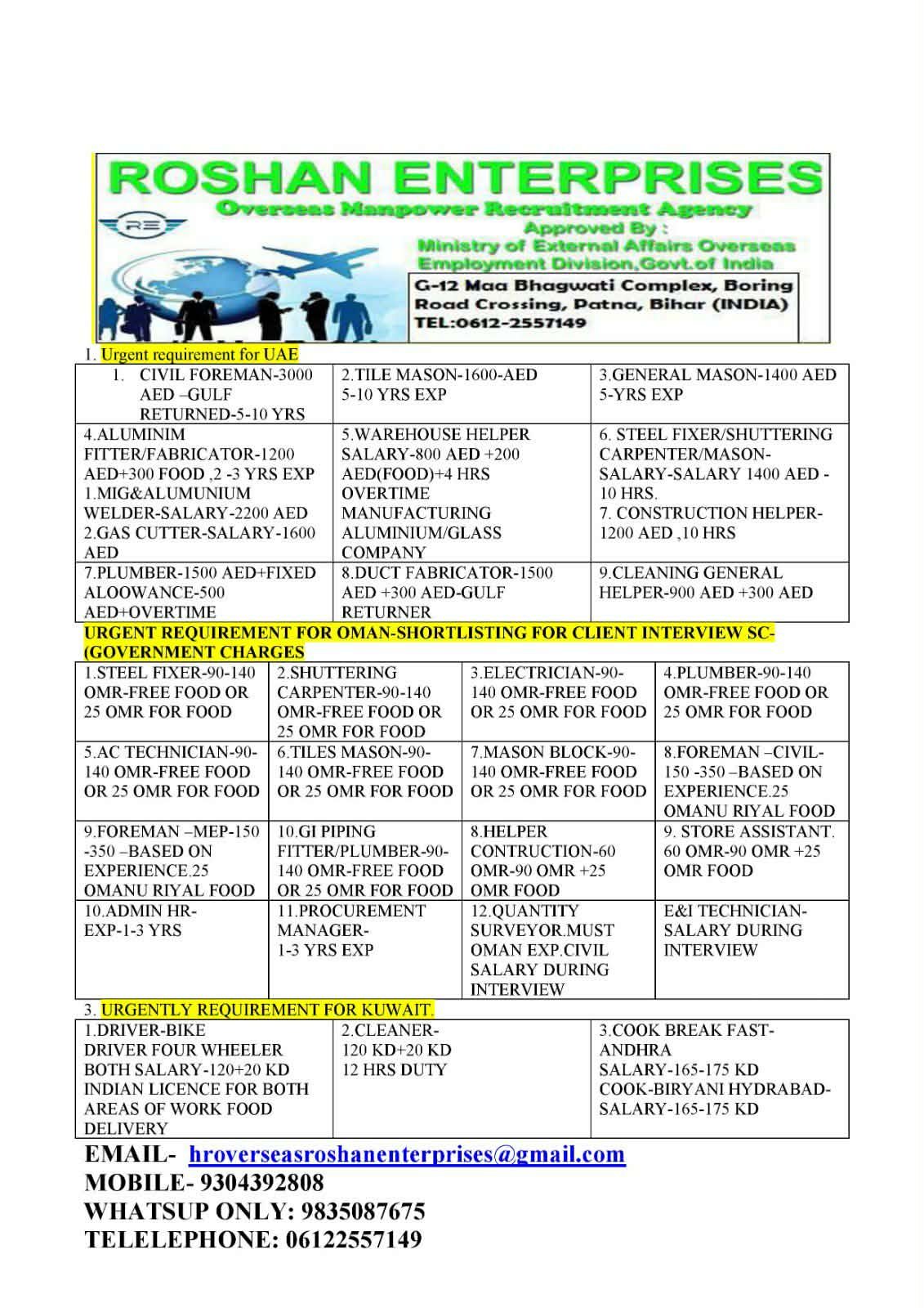 [Note: We try to provide genuine jobs .We dont have any role in Recruitment Process.Please enquiry about the Recruiting Agent before you accept the Job Offer / Pay any Money to them]