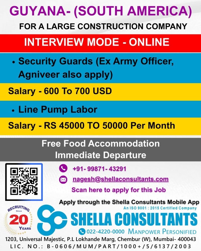 Urgent Hiring for Large Construction Company in Guyana (South America)! Online Interview | Immediate Departure | Free Food + Accommodation.